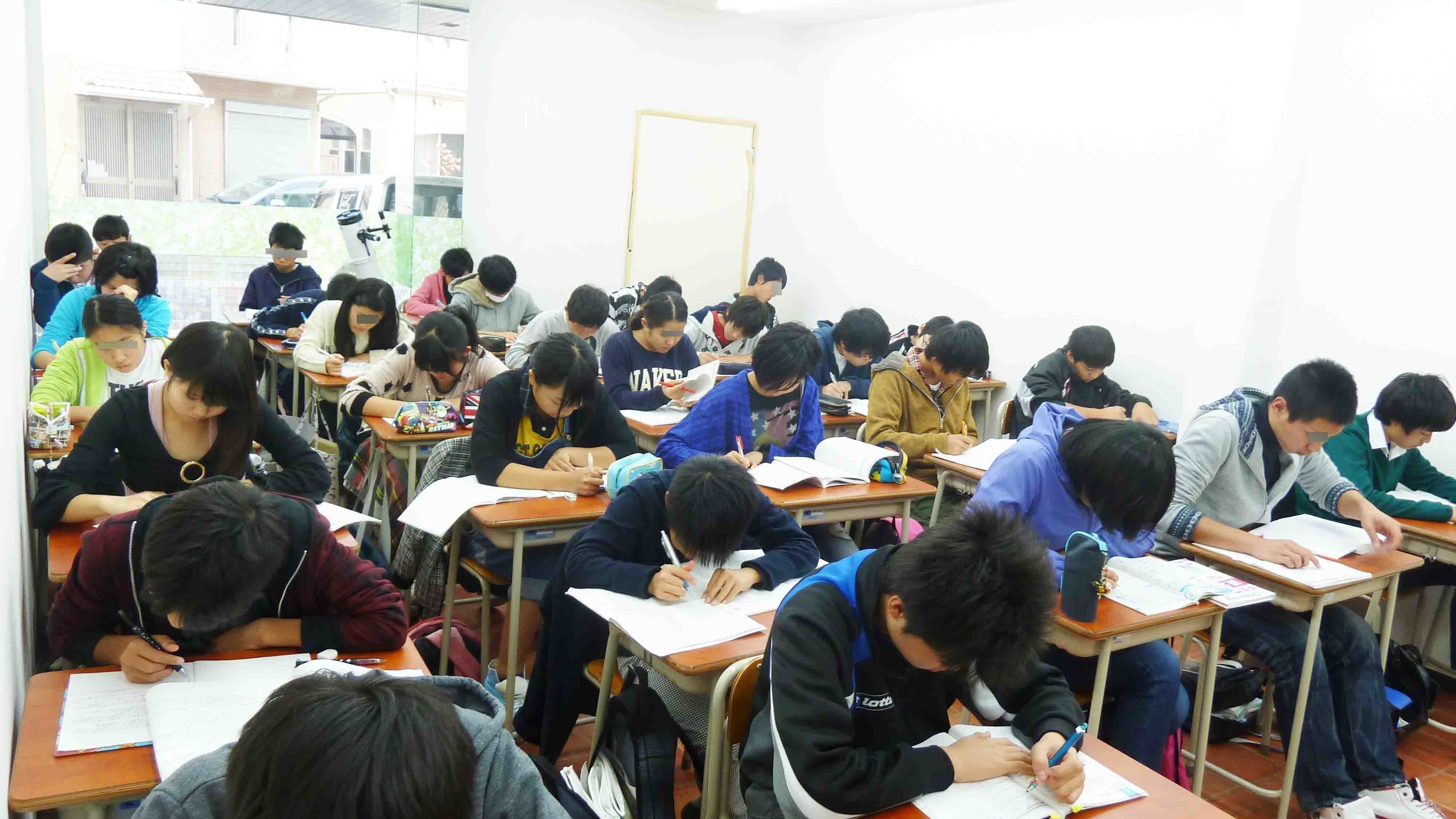 狭い範囲の学習である中学校の定期テストの次は、広い範囲の実力が試される実力テスト・チャレンジテスト対策です。期末テストが終了した7月から、12月から、3月からと各講習会で実力アップに励みます。講習会中は朝の10時から夜の10時まで学志館は開いており、実力アップに最適なパーフェクトテスト対策がスタートします。
