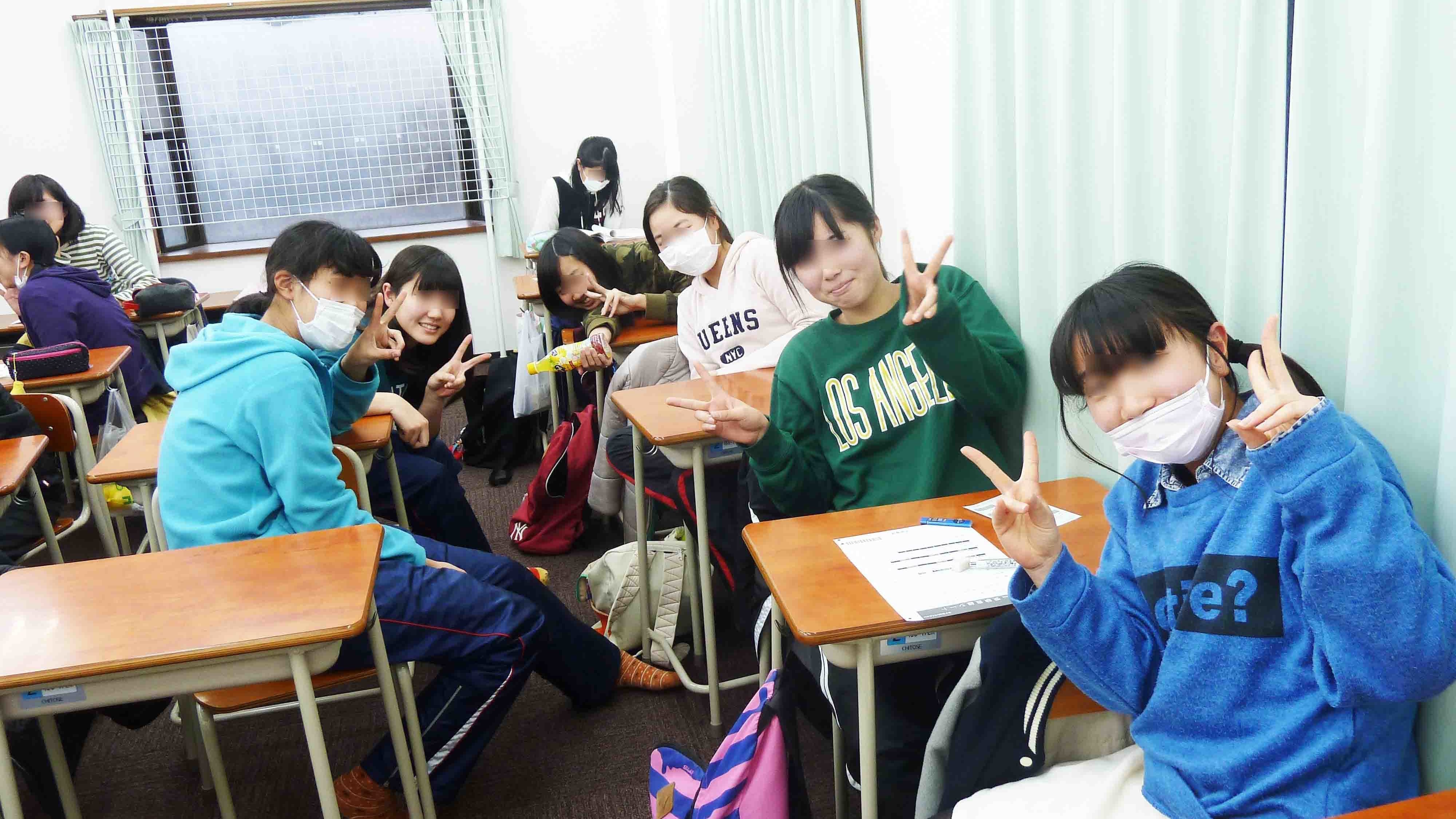 中学生は前のホワイトボードを使用しての解説型授業です。