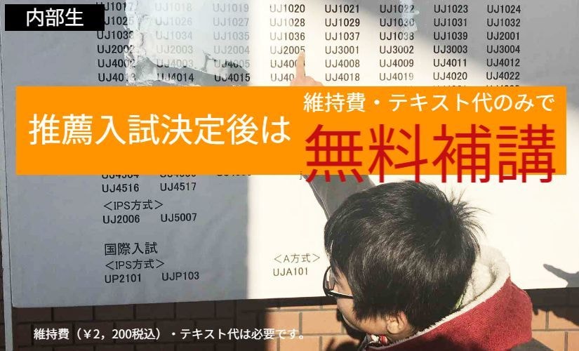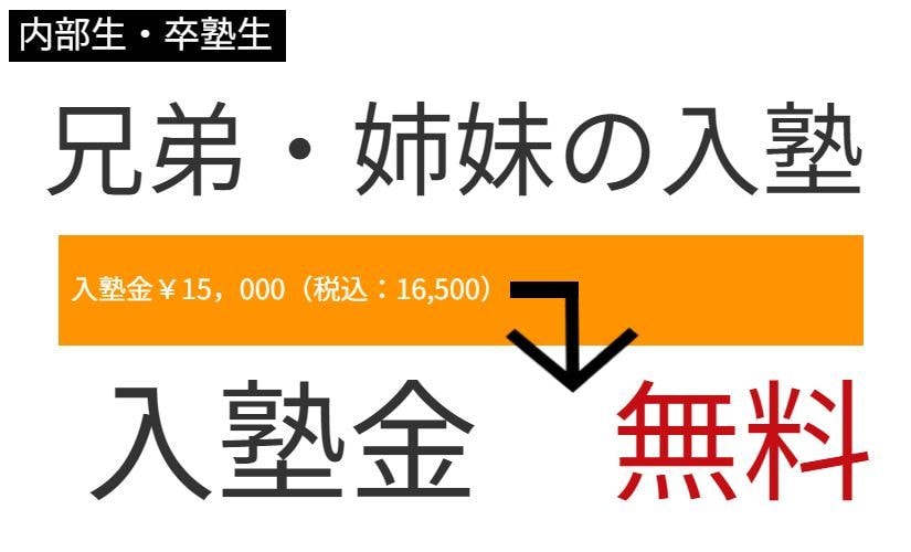 ※外部の方が無料であれば、内部生も無料。外部生だけ無料という不義理を、学志館では行えないと考えております。内部生重視、より早くから、よりたくさんの学習を頑張ってくれている内部生を大切にしたい。お得になるようにしたい。そう考えております。