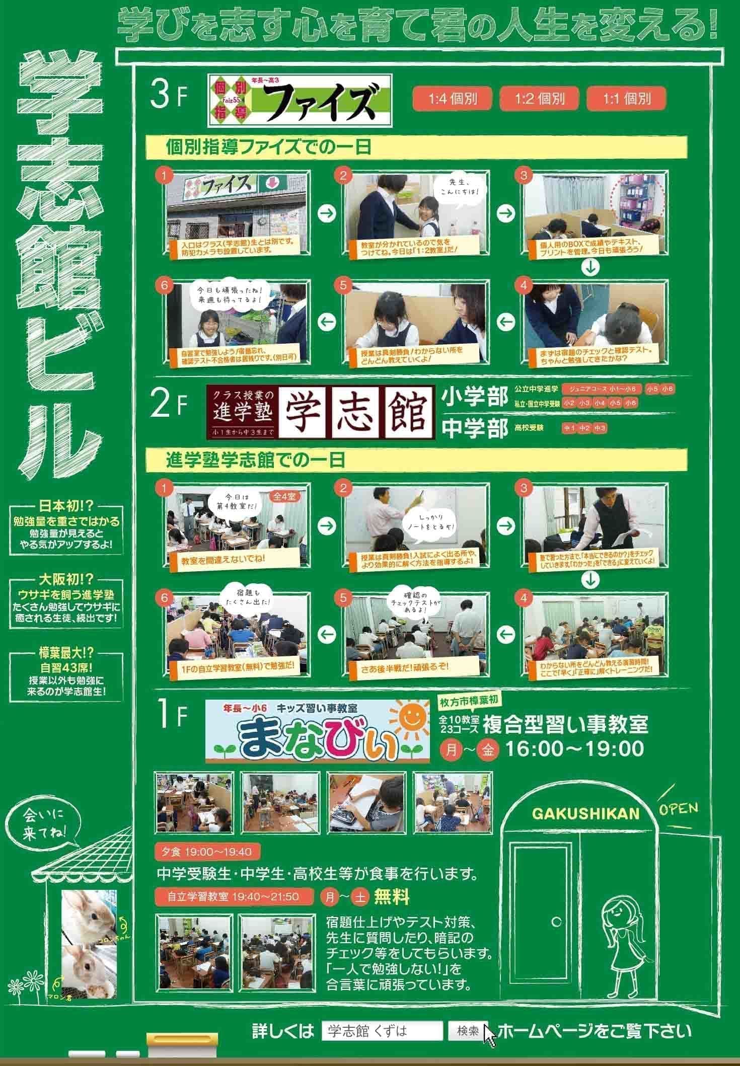 〒573-1112 大阪府枚方市楠葉美咲1丁目23-5 学志館美咲ビル1F~2F