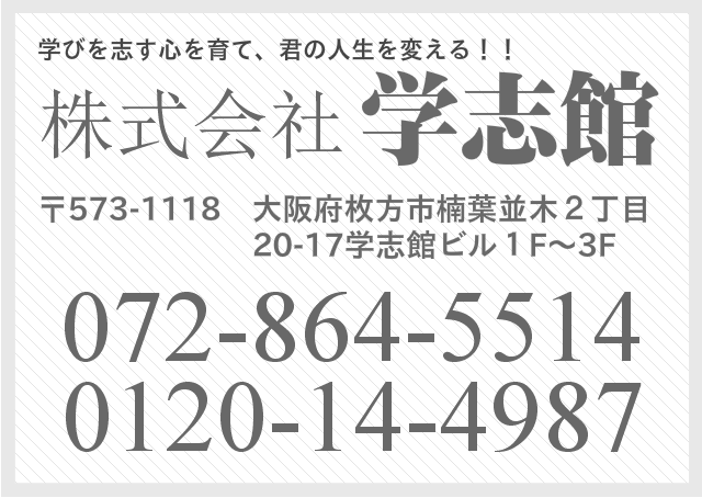 寝屋川高校、牧野高校、枚方、いちりつ高校など偏差値65未満(私立を含む)の高校が目標のお子様は、ジュニアコースを受講下さい。