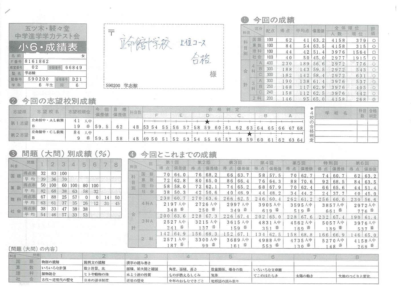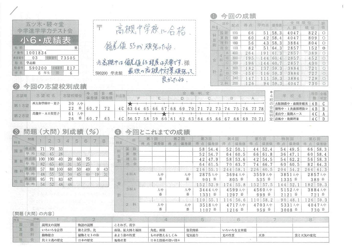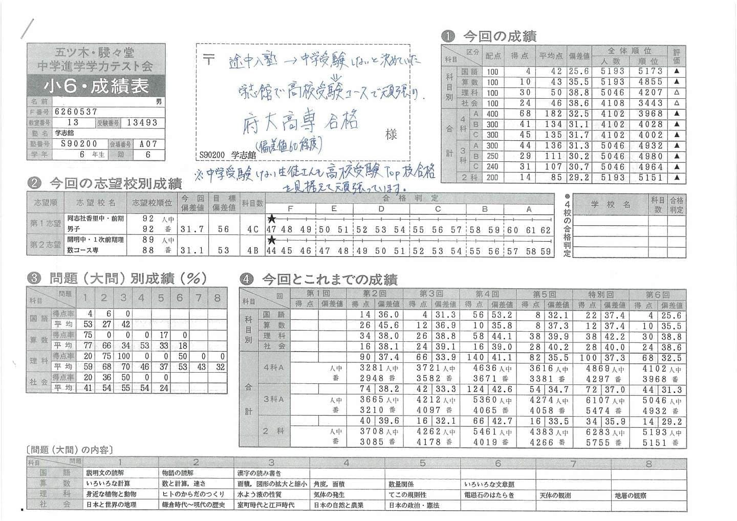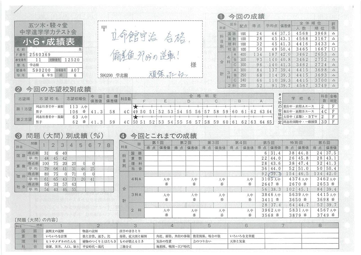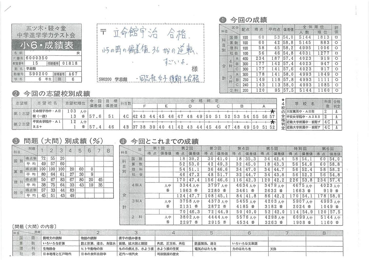 ■中学受験(五ツ木駸々堂模試)の凄い記録