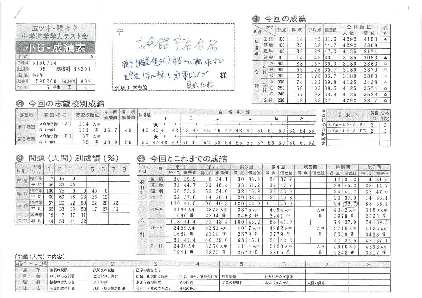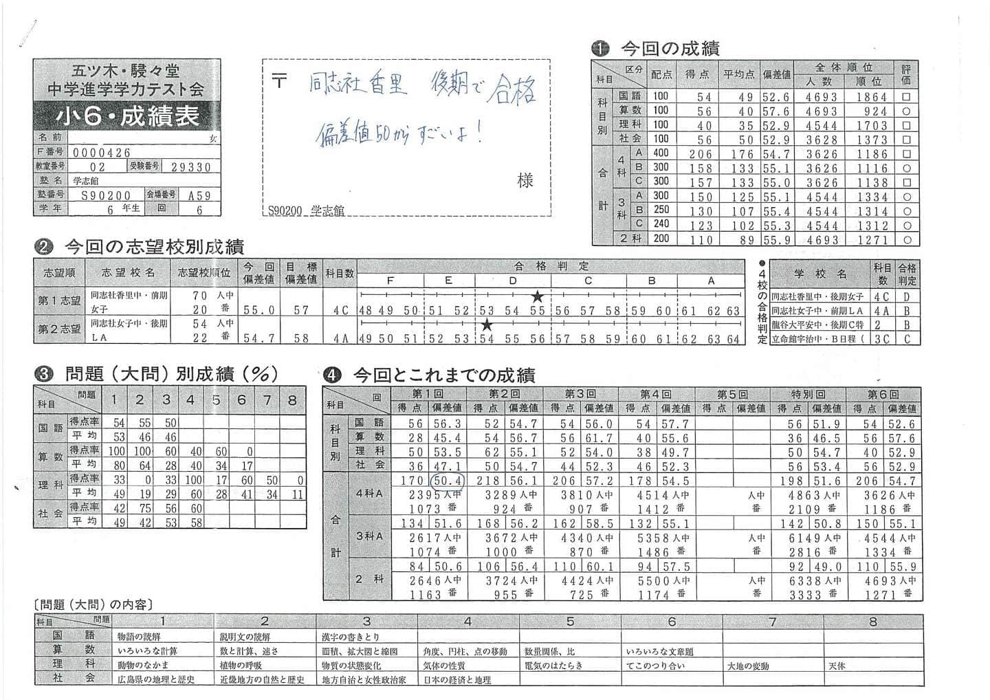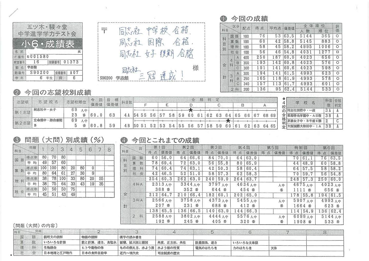 ■中学受験(五ツ木駸々堂模試)の凄い記録