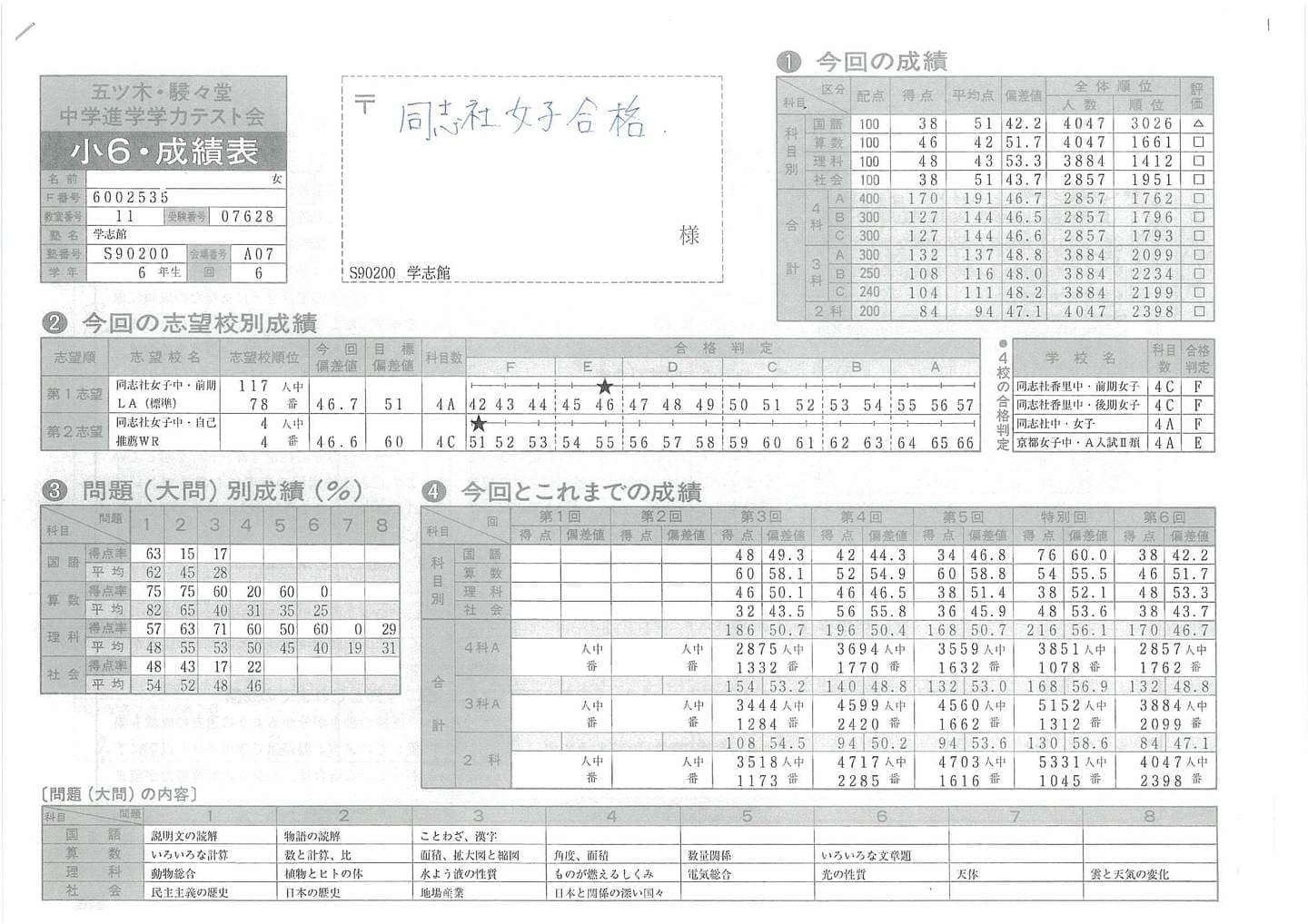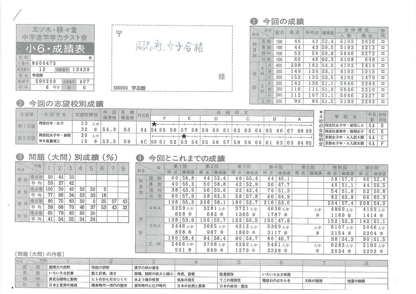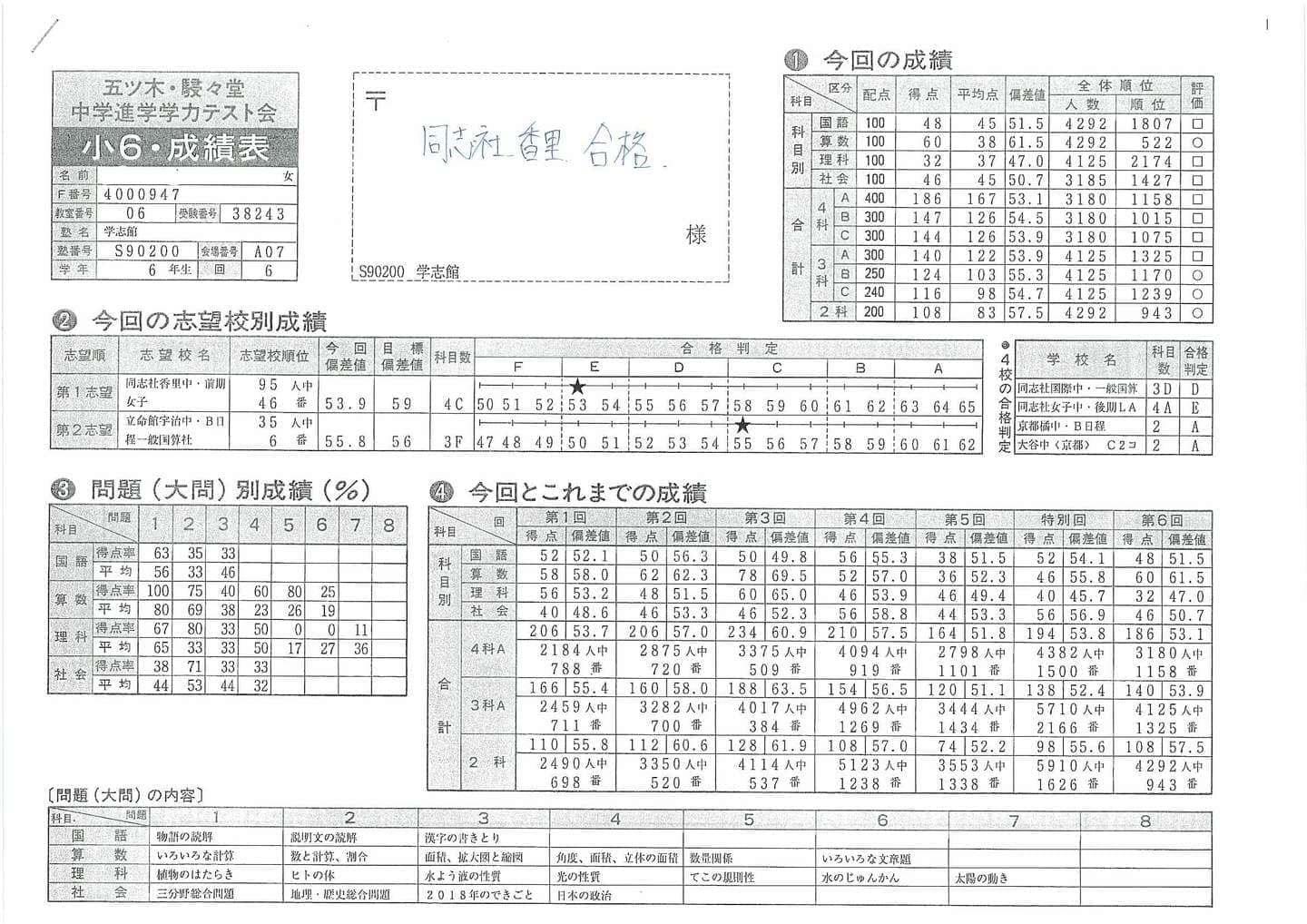 ■中学受験(五ツ木駸々堂模試)の凄い記録