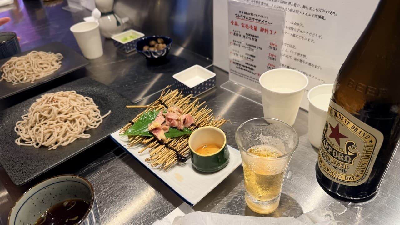 宮城は普通のお蕎麦を、僕はコシの強い黒そばを頂きました。 月曜日の塾がお休みの日だったのでビールも。 京都、河原町駅近くです。
