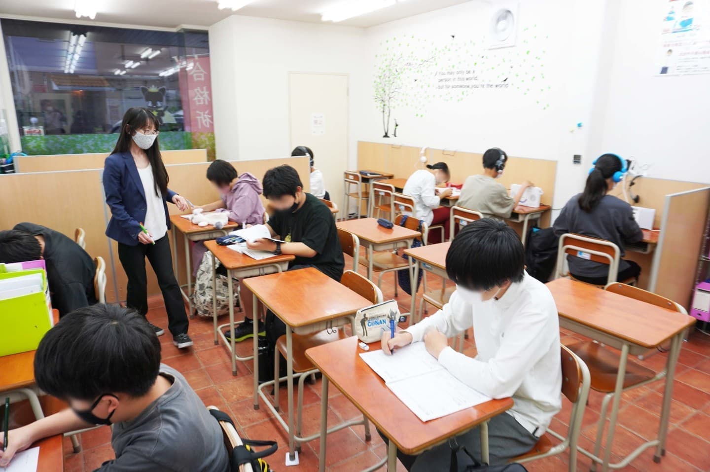 ・クラス授業は、皆と同じ教室でクラス授業を受講し、「受講科目強化授業」の際は、別教室にて、受講いただいた科目の学習を個人戦で頑張っていただく指導を行っております。(クラス授業が文系質問時間など、授業担当者が指導できる時間枠の場合は、クラス授業の教室にて「受講科目強化授業」を頑張って頂きます)