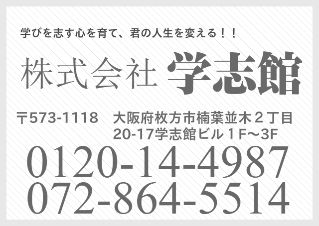 「わからないのならば聞きにおいでよ」と支える事も、「やっていない暗記を先にやって」と勉強の優先順位を教える事も必要です。優しいだけではダメ、楽しいだけではダメ、難しいだけでもダメ、厳しいだけも勿論ダメ。そんな中で、学志館の講師一同は、「先生に教えてもらって良かった」「学志館に通って良かった」と言ってもらえる感動をめざしています。