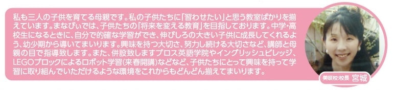 「おもしろき こともなき世を おもしろく」と言ったのは高杉晋作ですが、だからこそ「面白くする努力(勉強ができるようになって面白いとなっていただける努力)」を講師がするとともに、生徒さんには、「楽しんで勉強する方法をさがそう」「頑張って勉強をしたら、楽しい事をしよう」「自分の目標のために頑張ろう」など、学びを志す生徒さんとなるよう指導を心掛けます。